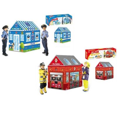 Cort de joaca din material rezistent cu motive atractive imprimate pe suprafata acestuia sediu pompieri sediu politie perfect pentru jocurile de rol si pentru dezvoltarea creativitatii si imaginatiei. Caracteristici - cort de joaca in forma de casa cu erse imprimeuri specifice sediului politiei pompierilor pe suprafata acestuia - se monteaza usor pe structura stabila din tubulatura plastic - cortul este confectionat din material textil - poate fi folosit atat in interior cat si in exterior in special pentru a obtine umbra protectoare pentru copil - incurajeaza creativitatea jocurile de rol Dimensiune produs 93x69x103 cm Avertizare Produsul este nou si comercializat in ambalajul original al producatorului. Imaginile de pe acest site au caracter informativ. Ambalajul trebuie indepartat recuperat si aruncat de catre un adult inainte de a se da spre utilizare copilului. Nu lasati ambalajele produselor la indemana copiilor. Se recomanda utilizarea produsului sub supravegherea unui adult. Produsul poate contine piese mici care se pot inghiti sau inhala de cei mici existand pericolul de sufocare sau nu este potrivita copiilor mai mici de 3 ani. Pastrati instructiunile si etichetele pentru referinte viitoare. Pastrati produsul departe de foc si nu il lasati in preajma temperaturilor ridicate si a umiditatii. Nerecomandat copiilor cu varsta mai mica de 3 ani