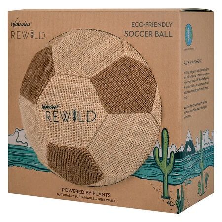 Parte din colectia noastra naturala ecologica de jucarii de plaja. Mingea de fotbal REWILD este fabricat din planta de iuta si arbore de cauciuc. Joaca-te descult pe nisip sau in iarba. In timp apa sarata si lumina soarelui pot provoca decolorarea naturala. In mod natural durabil si regenerabil ambalaje reciclabile. Nu este potrivita pentru crampoane. Gonflabila.Specificatii