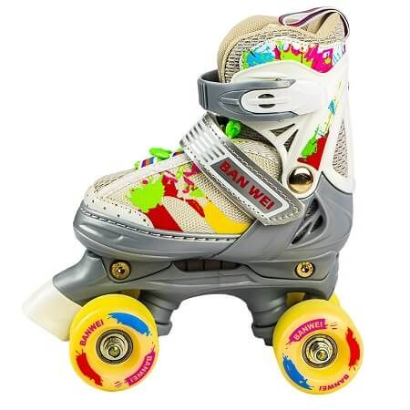 Patinele cu rotile marimea M sunt perfecte pentru utilizatori incepatori si niveluri intermediare si va ajuta sa ramaneti in forma si sa va bucurati de aer liber patinand. Caracteristici - Patinele reglabile sunt potrivite pentru marimile 31-34 18. 5-21. 5 cm . - In pachet se gasesc 1 pereche de patine cu rotile si 1 cheie imbus pentru reglaj. - Rolele sunt confectionate din materiale de calitate superioara cadrul PP mentine piciorul ferm lucru care ajuta la patinarea usoara aplicatiile din poliuretan cu modele colorate sunt potrivite pentru copii cele 4 roti sunt din silicon iar rulmentii sunt tip ABEC 7. - Fixarea patinelor pe picior este tripla si se realizeaza cu ajutorul siretului a benzii cu scai si cataramei din plastic cu clapeta. - Frana sub forma unui manson din plastic pozitionat din fata rotilor ajuta la ajustarea vitezei de rulaj. - Protectia interioara din material textil si burete are un volum mai mare in zona gleznei protejand si izoland piciorul de carcasa si facand patina mai confortabila. Protectia interioara se taseaza in timp si se muleaza pe piciorul patinatorului deci este posibil ca la inceput sa va ofere senzatia ca produsul este rigid dar dupa cateva ture acesta se va adapta perfect. - Amplasarea rotilor grupate cate doua face patinele stabile la rulaj. - Patinele cu rotile sunt recomandate pentru utilizatori incepatori si intermediari. - Produsul ajuta la cresterea conditiei fizice a flexibilitatii si a rezistentei la efort la cresterea atentiei si a concentrarii. - Ambalaj geanta din material textil si PVC transparent cu maner. Dimensiune patina 22x11. 2x26 cm Dimensiune rotile 5. 5x5. 5x3. 2 cm Greutate patina 0. 925 kg Avertizare Produsul este nou si comercializat in ambalajul original al producatorului. Imaginile de pe acest site au caracter informativ. Ambalajul trebuie indepartat recuperat si aruncat de catre un adult inainte de a se da spre utilizare copilului. Nu lasati ambalajele produselor la indemana copiilor. Se recomanda utilizarea produsului sub supravegherea unui adult. Produsul poate contine piese mici care se pot inghiti sau inhala de cei mici existand pericolul de sufocare sau nu este potrivita copiilor mai mici de 6 ani. Pastrati instructiunile si etichetele pentru referinte viitoare. Pastrati produsul departe de foc si nu il lasati in preajma temperaturilor ridicate si a umiditatii. Datorita masurarii manuale a produsului poate exista o diferenta minora fata de dimensiunea reala a produsului.Specificatii