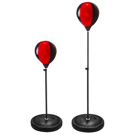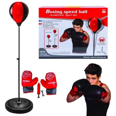 Oferiti micului campion valoros ocazia de a se distra si antrena cu setul de box pentru copii Copiii se vor distra grozav si isi vor antrena in acela i timp coordonarea mana-ochi Setul de box pentru copii nu ofera doar o activitate de interior exterior sanatoasa pentru copii ci este util si pentru antrenarea capacitatii de coordonare mana-ochi prin intermediul jocului. Caracteristici - set de box pentru copii contine sac de box tip para diametru 22 cm tuburi de metal cheie piese de prindere suport pompa cu ac o pereche de manusi - suportul pentru mingea de box se poate regla in inaltime 73-109 cm iar baza il face sa stea ferm pe sol dupa ce a fost umpluta cu apa sau nisip - dimensiune sac de box cu suport 109x33x33 cm - pentru cei mici va fi o distractie sa aiba acest sac de box in care sa loveasca cu pumnii Avertizare Acest produs poate contine piese mici din plastic. In cazul putin probabil al inghitirii unor astfel de piese consultati de urgenta un specialist. Produsul este nou si comercializat in ambalajul original al producatorului. Imaginile de pe site au caracter informativ. Ambalajul trebuie indepartat recuperat si aruncat de catre un adult inainte de a se da spre utilizare copilului. Nu lasati ambalajele produselor la indemana copiilor. Se recomanda utilizarea produsului sub supravegherea unui adult. Produsul poate contine piese mici care se pot inghiti sau inhala de cei mici existand pericolul de sufocare sau nu este potrivita copiilor mai mici de 3 ani. Pastrati instructiunile si etichetele pentru referinte viitoare. Pastrati produsul departe de foc si nu il lasati in preajma temperaturilor ridicate si a umiditatii. Nerecomandat copiilor cu varsta mai mica de 6 aniSpecificatii