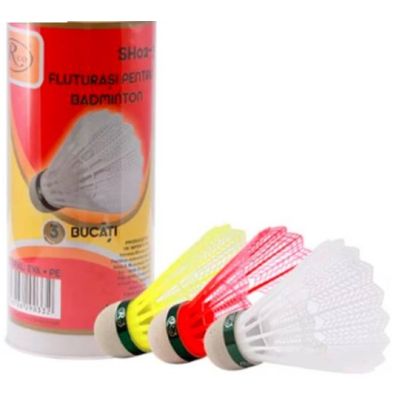 Set fluturasi badminton cu coroana din nylon si cap din spuma. Culoare alb galben rosu. Pachet prezentare 3 fluturasi set. Nota culoarea etichetei poate sa difere.Specificatii