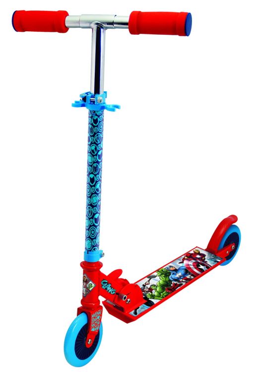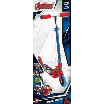 Trotineta Avengers cu 2 roti pentru ore nelimitate de distractie cu eroii preferati! Trotineta pliabila cu structura rezistenta din aluminiu si roti din silicon, ghidon reglabil pe inaltime, placa antiderapanta, frana pe spate, greutate maxima suportata: 50 kg