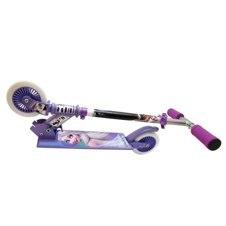 Trotineta Frozen2 cu 2 roti pentru ore nelimitate de distractie cu eroii preferati! Trotineta pliabila cu structura rezistenta din aluminiu si roti din silicon, ghidon reglabil pe inaltime, placa antiderapanta, frana pe spate, greutate maxima suportata: 50 kg