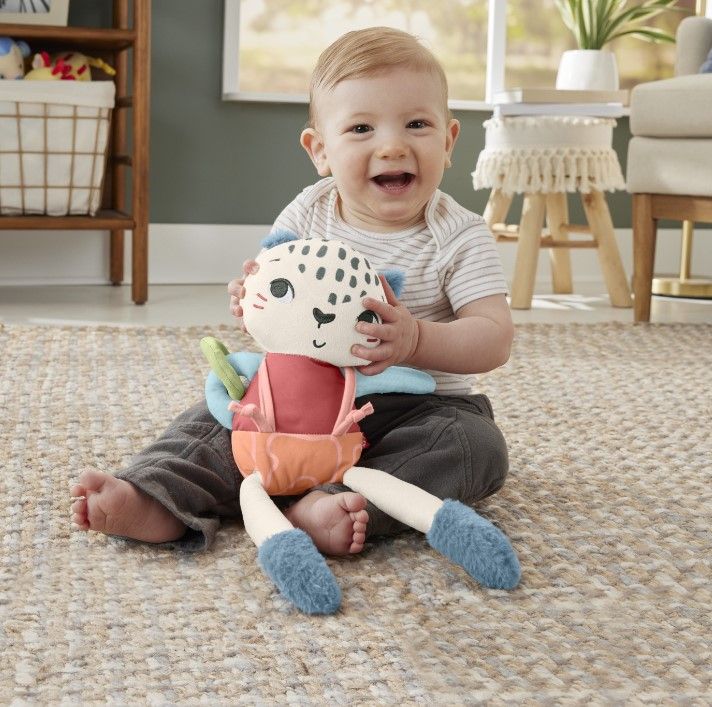 Jucaria de plus infatisand un leopard de zapada este atat de adorabila incat va bucura si distra copilul dvs. Aceasta jucarie se remarca prin culorile contrastante tesaturile moi si satinate precum si prin cizmele pufoase si incarligate toate contribuind la o experienta senzoriala captivanta. Exista activitati distractive precum picioarele care pot fi trase bretelele care pot aluneca si un inel de brat moale si mobil care vor capta atentia si vor stimula dezvoltarea abilitatilor motorii fine ale copilului dvs. Aceasta jucarie de plus ofera si un sentiment de siguranta copiilor mici contribuind la dezvoltarea lor armonioasa.Specificatii