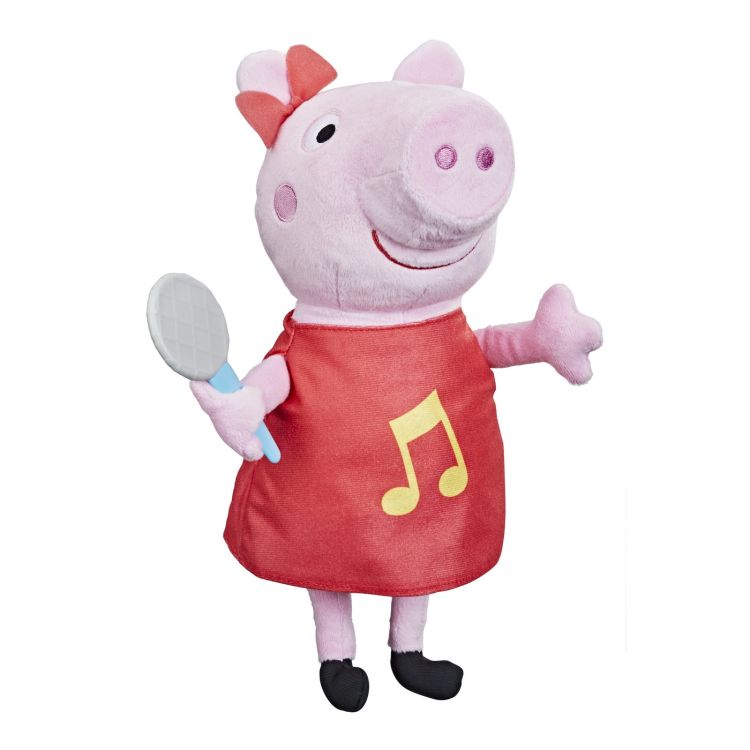 Peppa Pig iubeste sa cante, iar cu papusa de plus Peppa Oink-Along Songs, copiii pot canta impreuna cu ea! Inspirata de apreciata serie animata a Entertainment One UK, aceasta papusa Peppa Pig de 28 cm este moale pentru imbratisare si vine cu un accesoriu de microfon pentru a canta. Vrei sa-i auzi cantecele? Este usor! Doar apasati-i pe burta pentru a o auzi cantand, vorbind, razand (sforaind!) sau urland! Ea canta 3 melodii si spune 3 fraze pe care prescolarii si le-ar putea aminti din emisiunea ei TV. Copiilor cu varsta de peste 3 ani le va placea sa joace scene din spectacol sau sa-si viseze propriile aventuri muzicale pentru aceasta papusa de plus si draga!