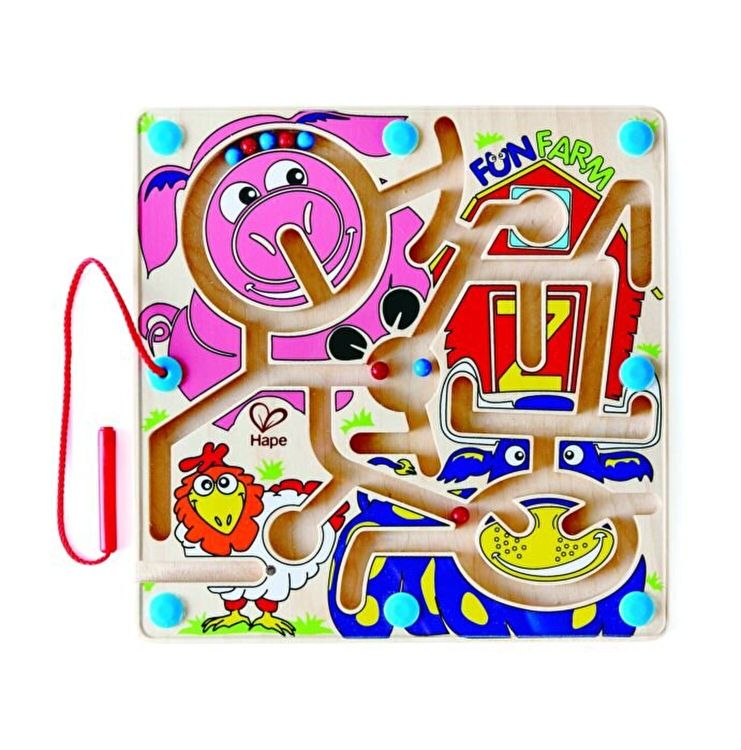 Hraneste animalele! O bagheta magnetica, care trebuie manevrata cu mana, strecoara biluta prin labirint. Acesta este acoperit cu geam de plastic, copilul trebuie sa-si foloseasca dexteritatea pentru a plimba biluta. Scopul jocului este ca bilele sa fie plimbate prin labirint pana cand ajung la sfarsit. Scopul jocului este ca bilele sa fie plimbate prin labirint pana cand ajung la sfarsit. Bagheta magnetica este prinsa cu un snur, pentru a nu se pierde.