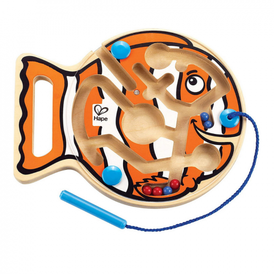 O bagheta magica manevrata cu mana ghideaza bilutele colorate prin labirintul in forma de pestisor.