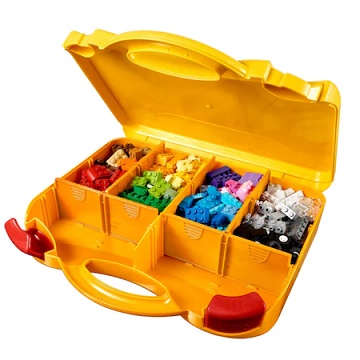 Distreaza-te organizand caramizile LEGO cu aceasta Valiza creativa LEGO Classic eleganta si robusta. Deschide cutia galbena pentru a accesa caramizile viu colorate, apoi distreaza-te creand fapturi simpatice, masini super, case primitoare si orice altceva iti poti imagina. Dupa ce termini, aseaza-ti caramizile in compartimentele lor, asa cum iti place, si gata!