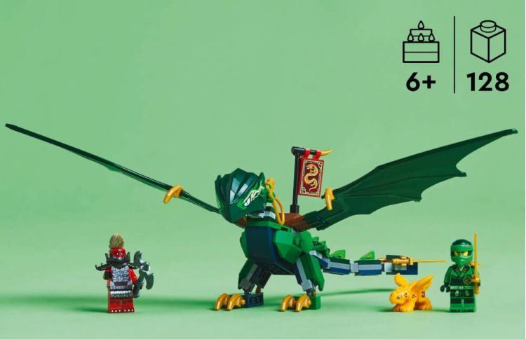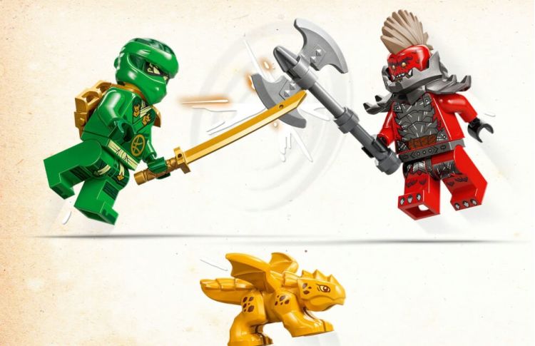 Acest set cu dragon LEGO® NINJAGO include si 2 minifigurine: Lloyd inarmat cu o sabie katana aurie si un ticalos razboinic Santinela dragoniana cu un accesoriu topor, plus un model auriu Pui de Dragon, astfel incat copiii sa se poata bucura de joaca pe roluri captivanta si stimulanta.