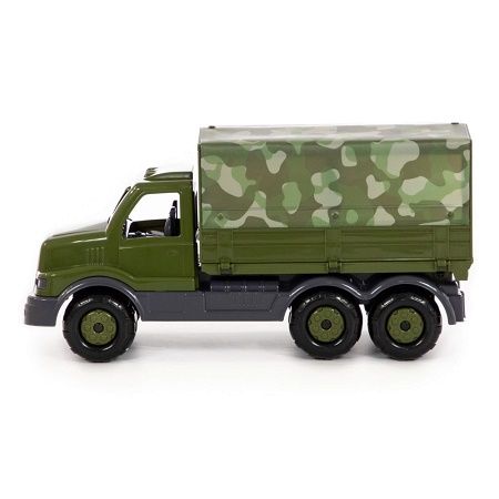 Jucariile de imitatie au fost intotdeauna extrem de indragite de cei mici. Baietilor le place cat sunt copii sa se joace cu masinute pe care atunci cand vor fi mari vor dori sa le conduca. Caracteristici - Camionul militar cu prelata este confectionat din material plastic rezistent in culori camuflaj. - Camionul imita foarte bine realitatea atat prin atentia la detalii cat si prin culorile specific militare folosite. - Camionul poate fi folosit pentru transportul erselor jucarii fie in aer liber fie in spatii interioare. - Obloanele partile laterale ale camionului sunt mobile. De asemenea prelata este detasabila. - Cele 6 roti din plastic sunt dispuse pe 3 axuri metalice puternice. - Jocul cu camonul ii dezvolta copilului abilitatile motorii fine imaginatia si creativitatea. Produsul avand un design similar cu cel al vehiculelor adevarate va permite copilului sa imite realitatea. - Ambalaj plasa. Avertizare Produsul este nou si comercializat in ambalajul original al producatorului. Imaginile de pe acest site au caracter informativ. Ambalajul trebuie indepartat recuperat si aruncat de catre un adult inainte de a se da spre utilizare copilului. Nu lasati ambalajele produselor la indemana copiilor. Se recomanda utilizarea produsului sub supravegherea unui adult. Produsul poate contine piese mici care se pot inghiti sau inhala de cei mici existand pericolul de sufocare sau nu este potrivita copiilor mai mici de 3 ani. Pastrati instructiunile si etichetele pentru referinte viitoare. Pastrati produsul departe de foc si nu il lasati in preajma temperaturilor ridicate si a umiditatii. Datorita masurarii manuale a produsului poate exista o diferenta minora fata de dimensiunea reala a produsului.Specificatii