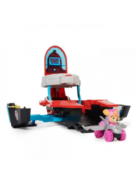 Cu o lungime de peste 38 cm acest centru de comanda are doua zone de joaca extensibile un selector de misiune dormitoare si multe altele pentru aventuri nesfarsite Ridica acoperisul centrului de comanda si pune-l pe Skye in capsula pentru a ridica centrul de comanda si rampa de lansare apoi apasa pe butonul rosu pentru a trimite in actiune masina de curse a lui Skye Avand stilul autentic al filmului Patrula Catelusilor masina de curse a lui Skye are roti reale care functioneaza astfel incat o poti impinge sau lansa in propria misiune de salvare Mareste-ti colectia de jucarii Patrula Catelusilor pentru fete si baieti adaugand camioanele de jucarie figurinele de actiune masinile din otel turnat jucarile-dinozauri animale de plus jocurile de societate puzzle-uri si multe alteleSpecificatii