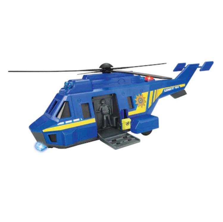Elicopterul Special Forces de la Dickie Toys aduce o noua dimensiune distractiei din camera copiilor. Efecte luminoase si sonore sunt actionate de un senzor de miscare. Acest lucru face ca interventia politiei din aer sa fie deosebit de reala. Usa laterala se deschide, oferind acces la interiorul modelat cu atentie. Elicpterul are o lungime de 26 centimetri si este construit la o scara de 1 la 24.