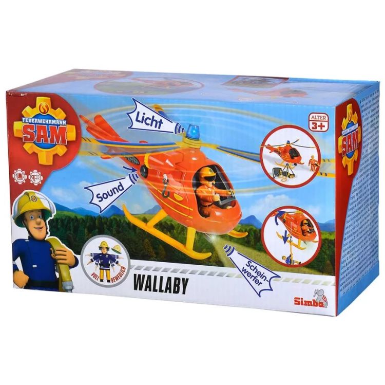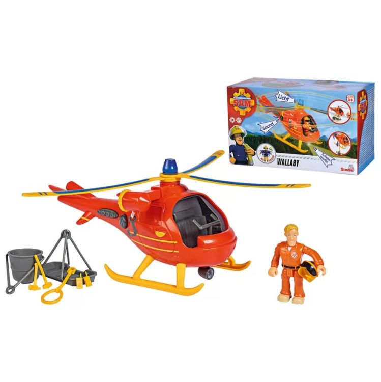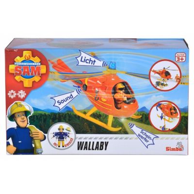 Wallaby elicopterul de interventie al pompierului Sam. Jucaria este dotata cu efecte luminoase si sonore. Sunt incluse si accesorii precum targa si figurina.Specificatii
