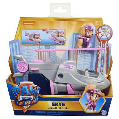 Fa echipa cu Skye in misiuni de salvare mai importante si mai indraznete cu vehiculul de lux care se transforma din filmul Patrula Catelusilor Frumosul elicopter de jucarie al lui Skye are vopsea metalica argintie detalii si elemente grafice autentice din film si se transforma uimitor la fel ca in film amp Icirc mbracat in noua lui uniforma din film Skye figurina de actiune inclusa este gata sa salveze ziua in Golful Aventurii Atunci cand apar probleme urca-l pe Skye in elicopter si pleaca in misiune. Survoleaza si invarte elicea apoi apasa pe coada elicopterului pentru a activa modul unic de transformare amp Icirc n modul racheta patinele de aterizare se retrag iar lateralele se extind pentru misiuni si mai rapide Reseteaza transforma si pleaca iar si iar in misiuni de salvare Elicopterul lui Skye este un cadou minunat pentru copiii cu varsta de peste 3 ani si completeaza perfect orice colectie de vehicule sau figurine Patrula Catelusilor. Vehiculele de lux din filmul Patrula Catelusilor dau viata actiunii si emotiei din film Colectioneaza-le pe toate fiecare vehicul de jucarie este vandut separat si foloseste-ti imaginatia pentru a inventa misiuni de salvare pline de actiune. Pentru si mai multa distractie foloseste vehiculul de lux cu noul turn Ultimate City Tower vandut separat Salveaza ziua cu Skye si vehiculul lui de lux din filmul Patrula CatelusilorSpecificatii