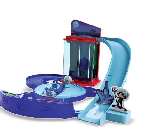 Centrul de comanda Eroi in Pijamale cu multe functii distractive cu lift si o masinuta de metal Cat inclusa si figurina scara masinuta. Eroi in Pijama Control Centre de la Dickie Toys are o multime de aventuri pe care sa le descoperi cu eroii tai preferati. Pista permite lansarea unui vehicul din lift pe o rampa la capatul careia se afla o bariera ce se poate actiona manual. Pista are o placa turnanta manuala si un lift manual si ofera spatiu pentru cei trei eroi din cabina de pilotaj. Setul include o masina de jucarie de inalta calitate cu volan liber in design Catboy si este prin urmare gata de pornire imediata.Specificatii