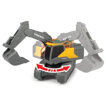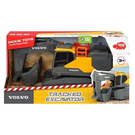 Excavator Volvo Tracked Excavator de la Dickie Toys le permite copiilor sa-si recreeze viata pe un santier la scara larga. Bratul si cupa excavatorului pot fi ridicate si coborate. Cabina se poate roti manual. Efectele luminoase si sonore ofera o experienta de joc variata. Baterii incluse. Fabricat sub licenta Volvo.