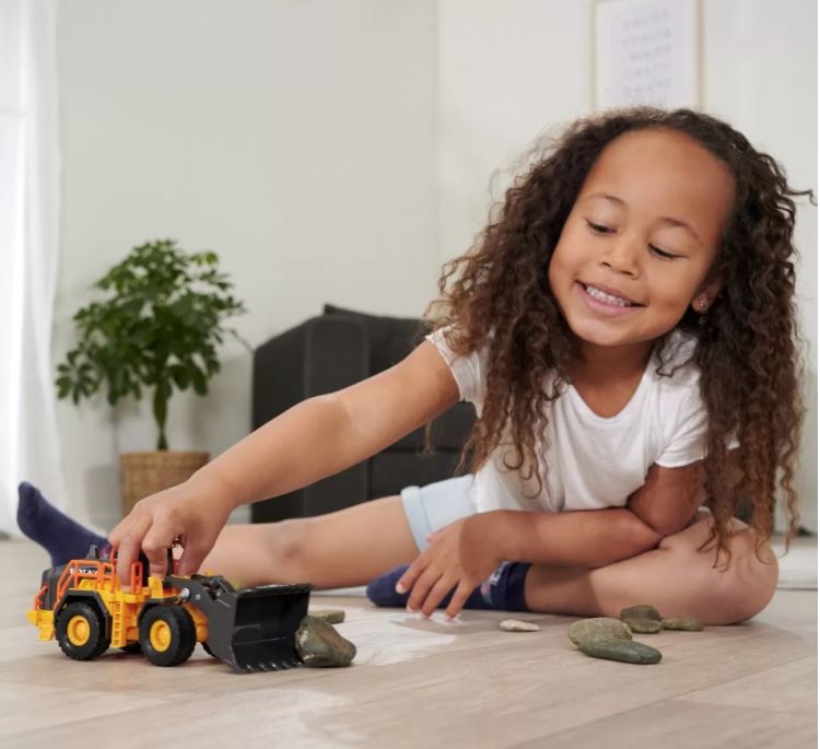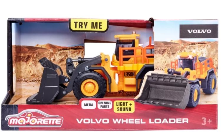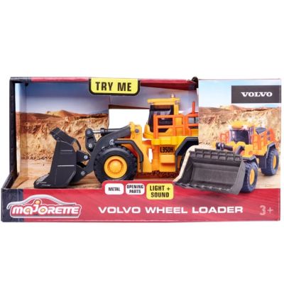Majorette incarcator frontal Volvo Vehicul de constructie mare pentru copii cu varsta de 3 ani si peste cu lopata mare si parti mobile scara 1 43 cu efecte de lumina si sunet. Pe langa un design complex acest incarcator pe pneuri Majorette vine si cu numeroase functii practice care sunt garantate pentru a distra copiii mici. Dispune de doua efecte sonore diferite precum si doua faruri doua stopuri si o lumina de avertizare portocalie pentru alertarea traficului din apropiere. Alte caracteristici distractive includ o capota care se deschide si lopata care poate fi miscata in sus si in jos. Lopata mare si sasiul superior sunt realizate din metal iar celelalte parti sunt din plastic. Baterii necesare 2Specificatii