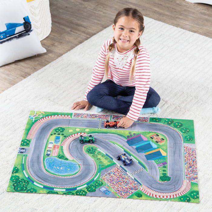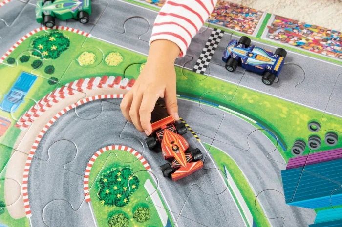 Acest set nu numai ca este perfect pentru a fi folosit acasa, dar este si o alegere fantastica pentru activitatile din clasa, ajutand copiii sa-si dezvolte abilitatile de rezolvare a problemelor, coordonare si motricitate fina. Acest puzzle de 48 de piese este mai mult decat o simpla provocare: este o incursiune intr-o lume plina de viteza si entuziasm. Asamblati puzzle-ul pentru a crea un fundal cu o pista de curse, plin de detalii pentru imaginatia copiilor si aventuri nesfarsite. Setul include 3 masini de curse din lemn, perfecte pentru a explora traseul de curse. Acest puzzle de podea nu numai ca stimuleaza imaginatia si creativitatea copiilor, dar ii si ajuta sa-si dezvolte recunoasterea vizuala, abilitatile de cooperare, motricitatea fina, rezolvarea problemelor si abilitatile cognitive. Acest set de puzzle va aduce ore de distractie, in timp ce copiii isi vor dezvolta abilitatile in timp ce se joaca. Prin cooperarea si jocul imaginativ, copiii vor invata sa lucreze in echipa si sa-si foloseasca creativitatea in timp ce se bucura de aceasta aventura captivanta.