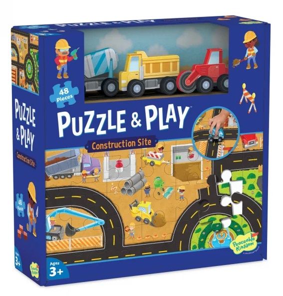 Un super joc 2 in 1! Copiii asambleaza mai intai puzzle-ul si apoi se joaca "de-a santierul", conducand cele 3 vehicule peste puzzle-ul asamblat, cu scene de pe santier. Distractie dubla!