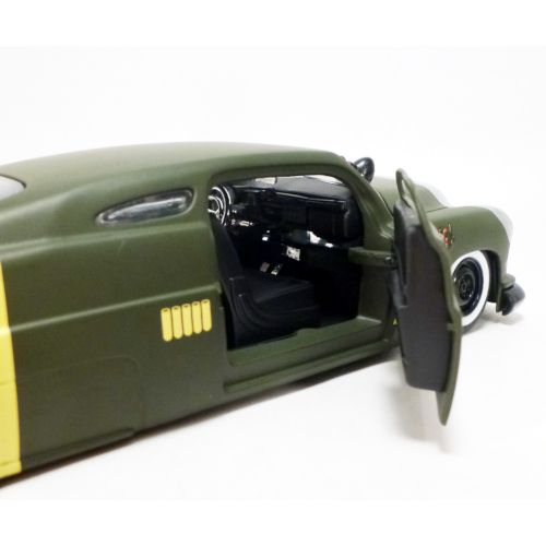 Masinuta de metal, Mercury, model 1951, freewheel, usile si capota se pot deschide. Masinuta este construita la o scara de 1: 24. Setul include si o figurina de metal, 7 cm.