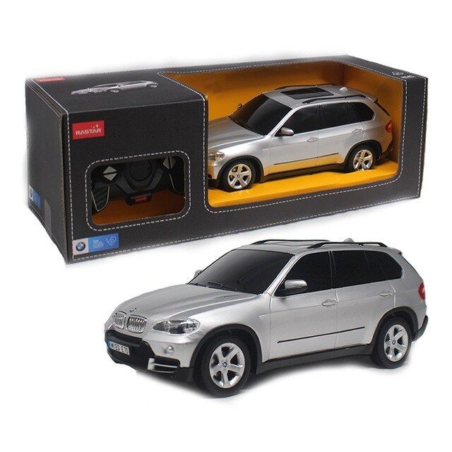 Copilul dumneavoastra se poate juca in voie cu masina cu telecomanda Bmw X5, scara 1 la 18, oferita de brandul international Rastar. Nicio cursa nu este imposibil de castigat cu acesta masinuta, replica oficiala cu licenta a modelului original, construita cu mare atentie la detalii. Masinuta are proportiile ideale pentru momente pline de distractie si amuzament, avand dimensiunile in centimetri dupa cum urmeaza: 27. 5*10. 4*10. 5. Masinuta functioneaza pe frecventa de 2. 4G. Alimentarea se face astfel: pentru masinuta sunt necesare 4 baterii tip AA, iar pentru telecomanda 2 tip AA. Masinuta se poate deplasa in toate directiile: inainte, inapoi, stanga sau dreapta. Masina cu telecomanda Bmw X5, scara 1 la 18, poate rula cu o viteza aproximativa de 10km/h, are tractiune 2WD, anvelope de cauciuc, posibilitate de reglaj a directiei direct pe sasiu si o raza de actiune a telecomenzii de circa 20 de metri. Acesta masinuta are si o functie suplimentara care face ca farurile si stopurile masinutei sa lumineze.
