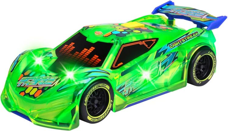 Masina Dickie Toys Speed Tronic 20 cm verde cu lumini si sunete. Prin apasarea butonului corpul masinutei va straluci in noapte. Masinuta este dotata cu motor cu frictiune.Specificatii