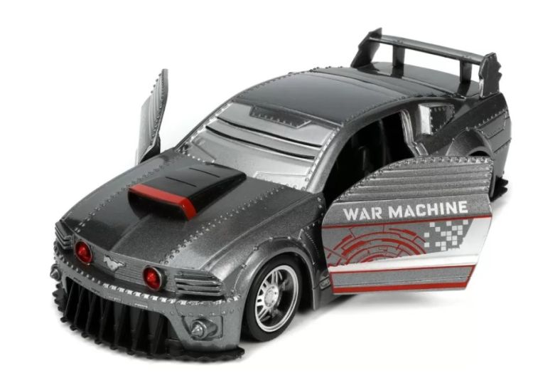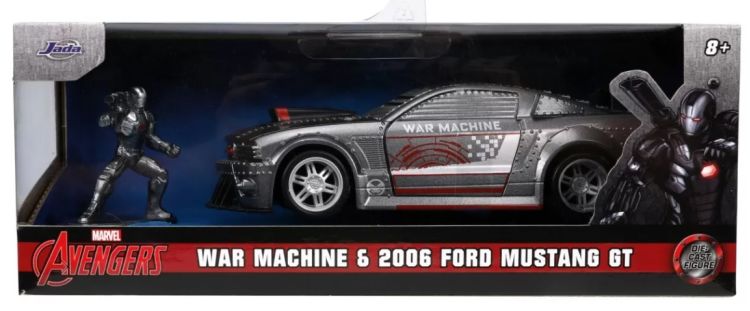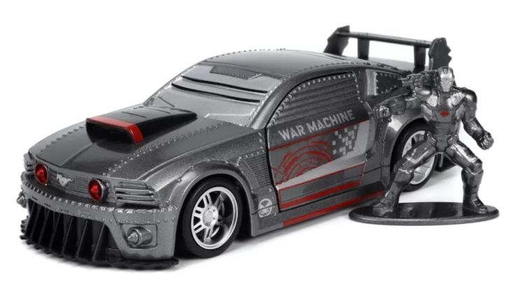 Masinuta marvel metalica ford mustang scara 1 32 si figurina metalica war machine jada