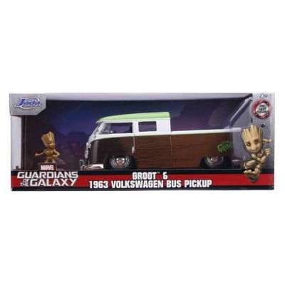Masinuta de metal Volkswagen, a personajului Groot, este construita la scara 1 la 24. Portierele se pot deschide. Setul include o figurina de metal Groot.