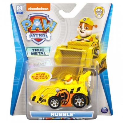 Misiunele de salvare se desfasoara acum mai repede ca niciodata cu vehiculele PAW Patrol True Metal! Aceste vehicule metalice la 1 la 55 arata la fel ca vehiculele PAW Patrol din serialul TV de succes. Cu detalii si grafica autentice, roti de lucru si material metalic turnat sub presiune, vehiculele True Metal sunt gata pentru salvarea rapida! Impingeti vehiculul cu mana sau lansati-l inainte pentru aventuri de mare viteza! in acest pachet il primesti pe Rubble.