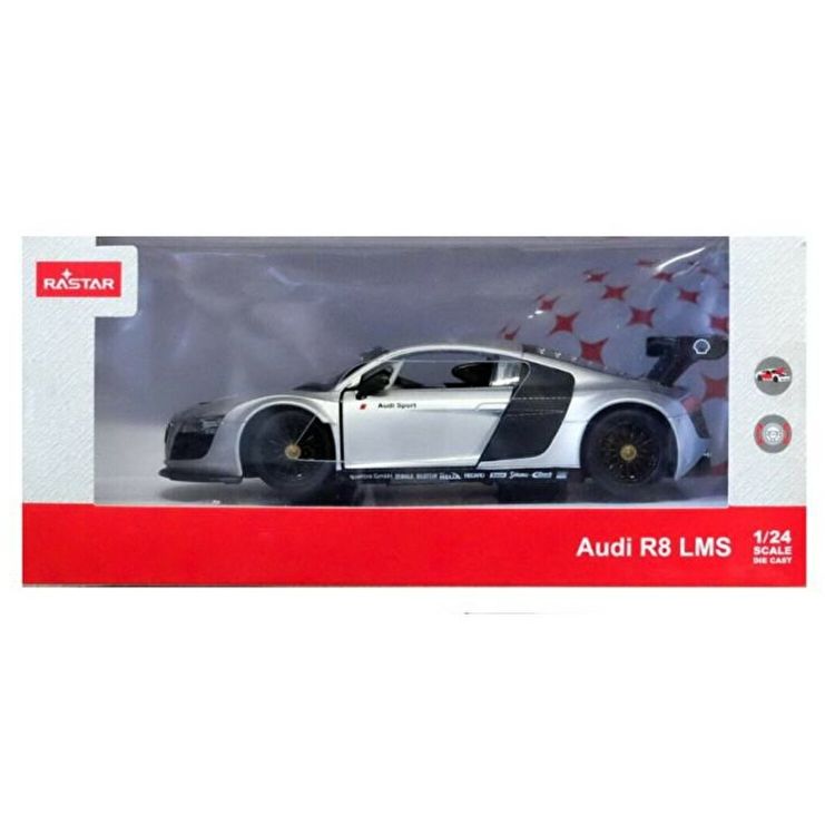 Masinuta are proportiile ideale pentru momente pline de distractie si amuzament,. Masinuta metalica Audi R8, scara 1 la 24, are anvelope de cauciuc si un design detaliat interior-exterior realizat din material metalic turnat cu accesorii realizate din material plastic portiere de calitate superioara. Copilul dumneavoastra se poate juca in voie cu masina metalica Audi R8 oferita de brandul international Rastar. Nicio cursa nu este imposibil de castigat cu acesta masinuta, care este o replica oficiala cu licenta a modelului original, construita cu mare atentie la detalii. Pasionatii si colectionarii de machete metalice pot de asemenea aprecia aceasta macheta metalica.