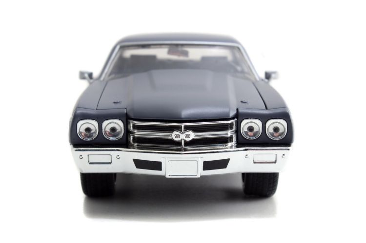 Masinuta din metal Chevy Chevelle SS 1970, cu usi, capota si portbagaj ce se pot deschide, scara 1: 24. Ajutati-l pe Dom si echipajul sau sa-si continue succesele globale in franciza de neoprit construita pentru viteza! Vehiculele sunt echipate cu dispozitive stilistice direct din filme si raspund exigentelor fanilor si colectionarilor. Adunati-i pe toti pentru a va aduna propria echipa rapida si pentru a salva ziua!