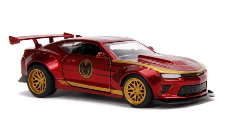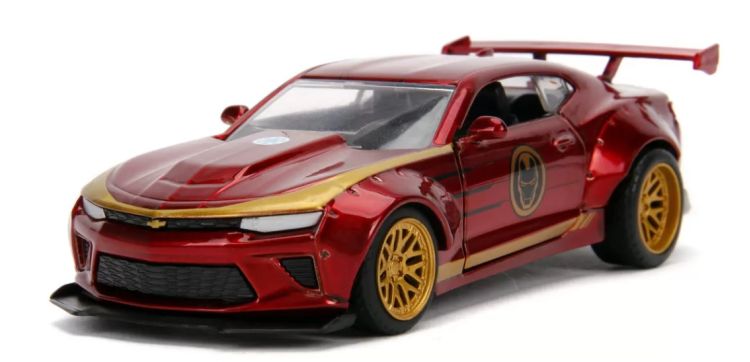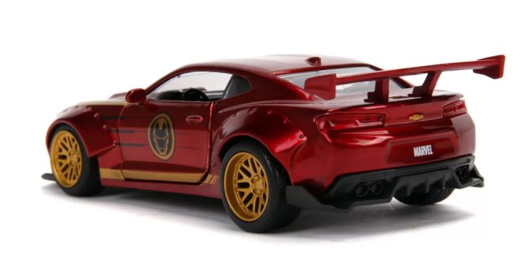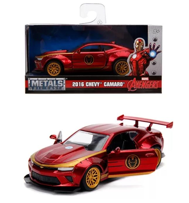 Masinuta de metal Marvel Iron Man Chevy Camaro. Portierele se pot deschide si masinuta este construita la scara 1 32. Portierele se deschid lasand sa se vada detaliile interioare create cu mare precizie.Specificatii
