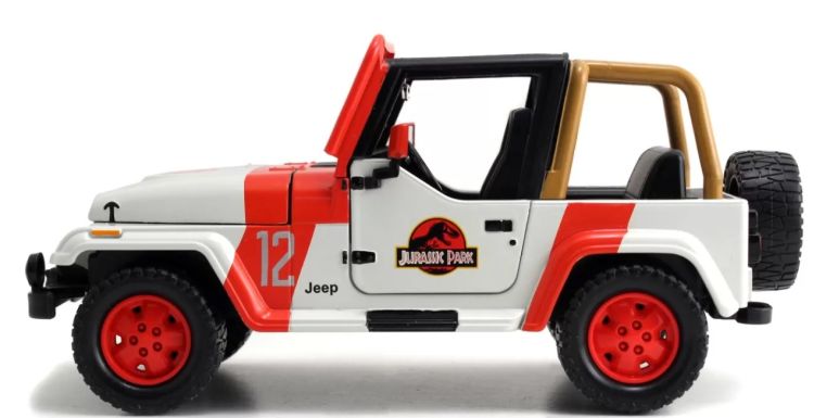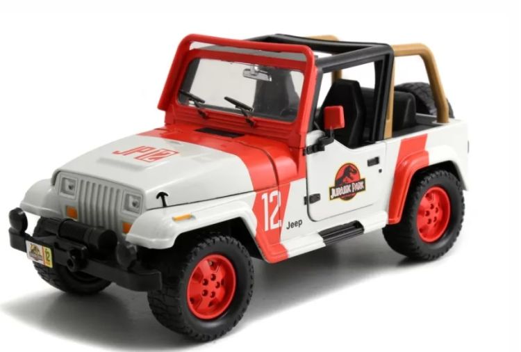 Masinuta Jeep Wrangler din metal din indragita serie Jurassic World cu roti din cauciuc capota si usi mobile scara 1 24. Viata gaseste o cale si acest vehicul turnat sub presiune Jeep Wrangler Jurassic Park din 1992 ar trebui sa gaseasca o cale in colectia ta. Acest emblematic Jeep Wrangler include repere de stil direct din seria de filme. Vehiculul are vopsea premium si detalii decorative roti functionale anvelope din cauciuc premium capota cu deschidere usi si portbagaj.Specificatii