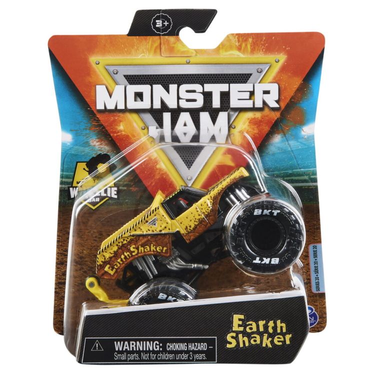 Masina oficiala a spectacolului Monster Jam. Un vehicul hiper detaliat, fidel eroilor spectacolului, cu un aspect agresiv si suspensii realiste pentru a face cascadoriile intr-un mod cat mai spectaculos. Macheta este metalica si foarte bine realizata. Foarte rezistenta. Monster Jam ofera mai multe detalii si grafica decat oricand! Cu anvelopele oficiale BKT, jante cromate stilizate si un sasiu autentic cu detalii cromate, acest camion monstru intruchipeaza stilul si volanul omologului sau din viata reala! PLUS, acest camion cu scara 164 vine cu un sofer turnat in scaunul soferului. Setul include Un camion Monster Truck Monster Jam Colectia de postere Figurina turnata sofer. Acest pachet contine personajul Earth Shaker.