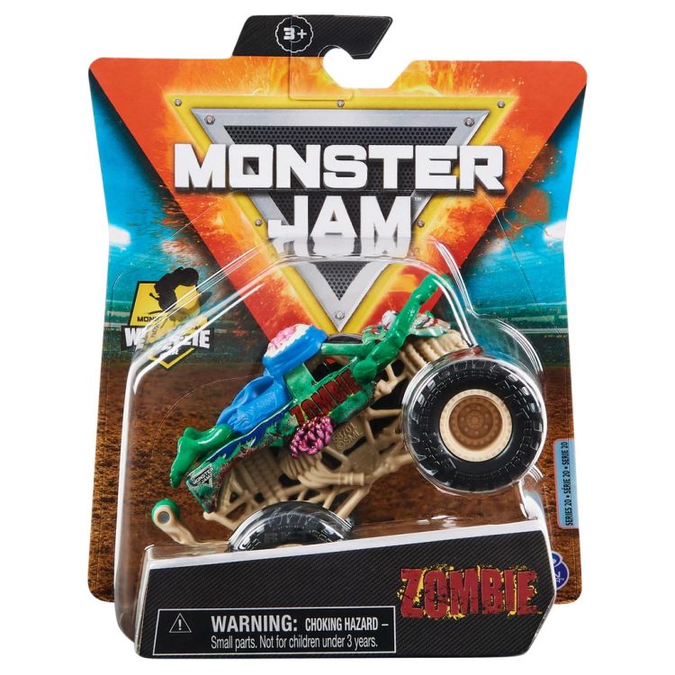 Masina oficiala a spectacolului Monster Jam. Un vehicul hiper detaliat, fidel eroilor spectacolului, cu un aspect agresiv si suspensii realiste pentru a face cascadoriile intr-un mod cat mai spectaculos. Macheta este metalica si foarte bine realizata. Foarte rezistenta. Monster Jam ofera mai multe detalii si grafica decat oricand! Cu anvelopele oficiale BKT, jante cromate stilizate si un sasiu autentic cu detalii cromate, acest camion monstru intruchipeaza stilul si volanul omologului sau din viata reala! PLUS, acest camion cu scara 164 vine cu un sofer turnat in scaunul soferului. Setul include Un camion Monster Truck Monster Jam Colectia de postere Figurina turnata sofer. Acest pachet contine personajul Zombie.