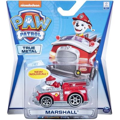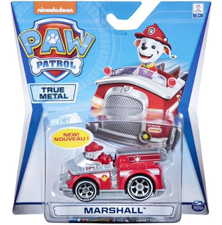 Misiunele de salvare se desfasoara acum mai repede ca niciodata cu vehiculele Paw Patrol True Metal! Aceste vehicule metalice la 1 la 55 arata la fel ca vehiculele Paw Patrol din serialul TV de succes. Cu detalii si grafica autentice, roti de lucru si material metalic turnat sub presiune, vehiculele True Metal sunt gata pentru salvarea rapida! Impingeti vehiculul cu mana sau lansati-l inainte pentru aventuri de mare viteza! In acest pachet este Marshall cu masina lui.