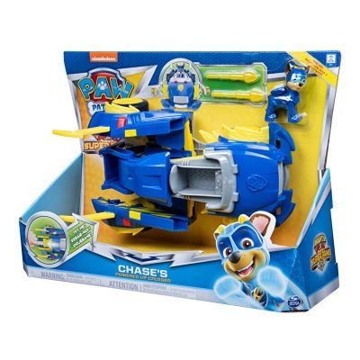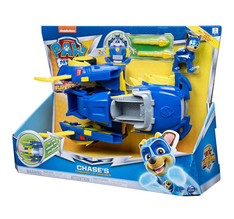 Gaz la maxim! Super-vehicule ale Patrulei Catelusilor sunt gata pentru actiune! Alaturati-va lui Chase si traiti aventuri cu vehicule super rapide, pline de surprize, care pot suferi o transformare extraordinara. Cand se apropie pericolul, treceti la modul special. Pur si simplu apasati spoilerele si partile laterale ale masinii se vor deschide, dezvaluind mecanisme transparente si aruncatoare de grenade. Chase si super-vehiculul lui sunt gata pentru orice, chiar si pentru a elimina obstacolele cu grenadele aruncate de masini. Iar cand pericolul dispare, pur si simplu apasa mecanismul pentru a reveni la aspectul obisnuit al masinii dvs.