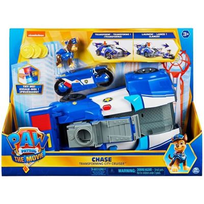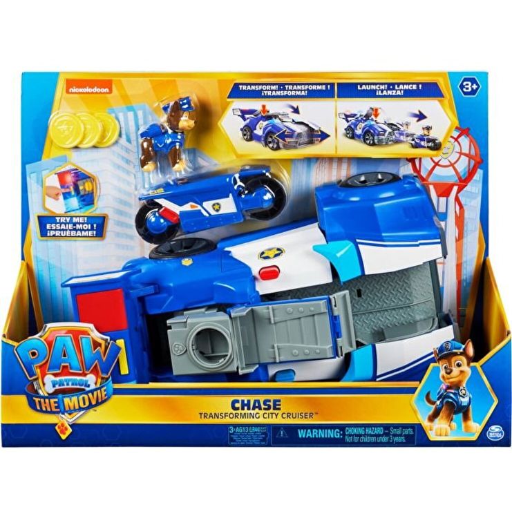 Apasati butonul rosu pentru a deschide compartimentul masinii de politie si apasati din nou pentru a lansa motocicleta Chase. Transforming City Cruiser are lumini si efecte sonore realiste din film. Aceasta jucarie PAW Patrol este perfecta pentru misiuni interesante.