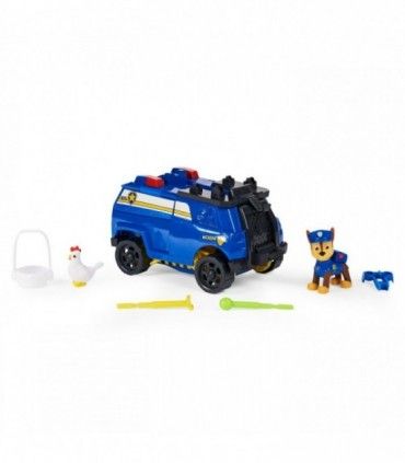 Porneste la salvare cu Chase din patrula catelusilor si vehiculul sau de salvare! Masina de politie a lui Chase are grafica si detalii autentice, o zona de depozitare pentru accesorii si o transformare interesanta de salvare. Cand vine timpul pentru o salvare palpitanta, pune-ti figurina Chase pe scaunul soferului si porneste cu viteza in misiunea ta. Odata ce ajungi, apasa pe vehicul pentru a intra in modul de salvare - vehiculul se ridica, pentru a dezvalui lansatoarele de proiectile si drona de salvare, oferindu-i in acelasi timp lui Chase vederea perfecta pentru o salvare palpitanta! Lanseaza proiectilele de minge de tenis si plasa de salvare pentru a indeparta obstacolele. Pentru misiuni de salvare in locuri greu accesibile, deschide compartimentul de depozitare din spatele vehiculului si trimite drona de salvare a lui Chase si cosul de recuperare pentru a duce iepurasul sa zboare in siguranta! (figurina inclusa) Dupa ce adorabilul animal prieten a fost salvat, agata cosul in partea din fata a vehiculului pentru a-i oferi un loc sigur in care sa calatoreasca pe drumul de intoarcere spre casa. Da viata salvarilor tale pline de actiune, in timp ce iti folosesti imaginatia pentru a-ti indeplini misiunile. Pentru si mai multe aventuri de salvare, cauta vehiculul lui Marshall porneste si salveaza (vandut separat). Jucariile cu vehicule Rise and Rescue pentru baieti si fete de 3 ani sunt cadourile perfecte pentru copii. Formeaza o echipa cu catelusul tau favorit din patrula catelusilor si Chase, si salveaza ziua cu vehiculul sau de ridicare si salvare!