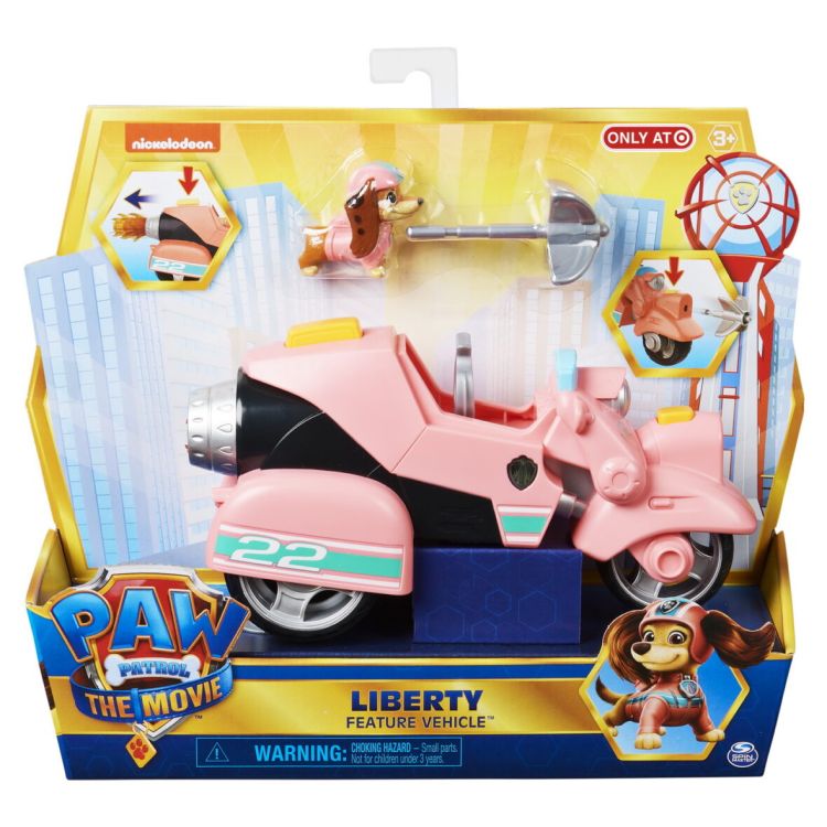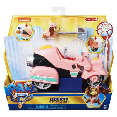 Fa echipa cu Liberty, cea mai noua catelusa din Patrula Catelusilor, pentru salvari mai mari si mai indraznete cu vehiculul ei din filmul Patrula Catelusilor. Stralucitorul si elegantul vehicul de oras al lui Liberty are o vopsea argintie metalizata, detalii si grafica autentica din film, un lansator de proiectile si o racheta de propulsie chiar din film! Îmbracata in uniforma ei din film, Liberty (figurina de colectie inclusa) este gata sa rezolve problemele zilei in Orasul Aventurilor. Cand apar probleme, pune-o pe Liberty in scaunul soferului si da fuga la salvare! Pentru un plus de viteza, apasa butonul din spate pentru a activa racheta de accelerare cand impingi vehiculul lui Liberty, flacara se roteste! Incarca proiectilul cu carlig de prindere in partea din fata a vehiculului si apasa butonul pentru a lansa! Liberty si vehiculul ei aduc actiunea si emotiile de pe marele ecran! Acest vehicul este un cadou minunat pentru copii si nu poate lipsi din colectia ta de vehicule si figurine de jucarie din Patrula Catelusilor este singurul loc in care poate fi gasita Liberty si vehiculul ei! Pentru si mai multa actiune din film, foloseste vehiculul lui Liberty cu noul turn al Patrula Catelusilor, Ultimate City Tower (vandut separat) si colectioneaza toate vehiculele de lux din filmul Patrula Catelusilor (masinute de jucarie, fiecare vanduta separat). Da culoare zilei cu Liberty si vehiculul ei din filmul Patrula Catelusilor!