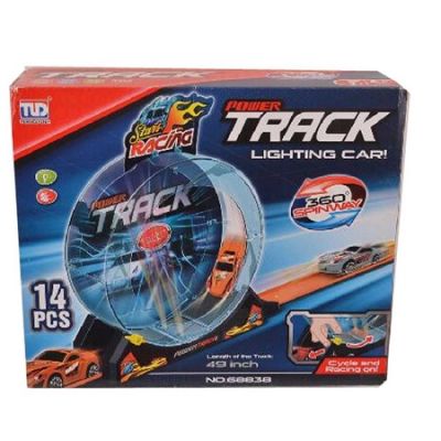 Setul pista cu bucla 360 grade cu masinuta este pentru cei mici care sunt pasionati de curse . Caracteristici - trageti inapoi masina asezati-o pe pista si lasati-o sa ruleze la viteza maxima prin cerc - design inteligent multicolor si atractiv pentru copii - stimuleaza creativitatea si imaginatia copiilor - pista usor de instalat include 14 piese - lungime de rulare pentru masina 124 cm - jucarie din material plastic nu dauneaza sanatatii non-toxica Avertizare Produsul este nou si comercializat in ambalajul original al producatorului. Imaginile de pe acest site au caracter informativ. Produsul nu functioneaza cu baterii. Ambalajul trebuie indepartat recuperat si aruncat de catre un adult inainte de a se da spre utilizare copilului. Nu lasati ambalajele produselor la indemana copiilor. Se recomanda utilizarea produsului sub supravegherea unui adult. Produsul poate contine piese mici care se pot inghiti sau inhala de cei mici existand pericolul de sufocare sau nu este potrivita copiilor mai mici de 3 ani. Pastrati instructiunile si etichetele pentru referinte viitoare. Pastrati produsul departe de foc si nu il lasati in preajma temperaturilor ridicate si a umiditatii. Nerecomandat copiilor cu varsta mai mica de 3 aniSpecificatii