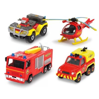 Pompierul Sam Set 4 vehicule din metal cu elicopter scara 1 64