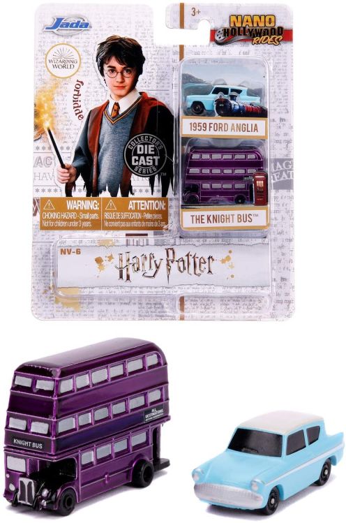 Setul contine 2 masinute din seria Harry Potter 2. Masinutele sunt realizate din metal si au o lungime de 4 centimetri. Una dintre masinute este faimoasa Ford Anglia 1959, iar cea de-a doua este autobuzul Knight.