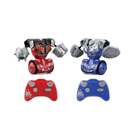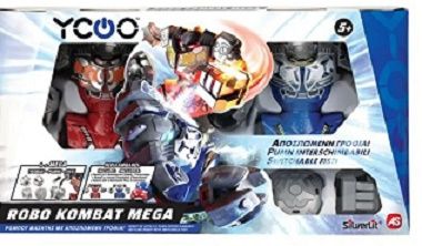 Robo Kombat Mega Roboti luptatori controlati de la distanta cu pumni puternici Provoaca-ti prietenii sau antreneaza-te singur pentru o lupta reala cu inteligenta artificiala. Caracteristici pumn comutabil 6 actiuni merge inainte stanga dreapta loveste stanga dreapta lovitura combinata ochi LED cool efect de sunet care taie respiratia. Setul contine 2 x Robo Kombat Mega 4 x accesorii pentru brate Mega Fist 2 x telecomenzi. Varsta recomandata 5 functioneaza cu baterii 4xAAA 6xAA nu sunt incluse . Producator Silverlit.Specificatii
