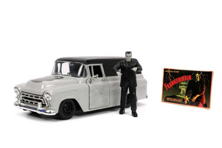 Set masinuta 1957 Chevy Suburban si figurina Frankenstein, JadaToys