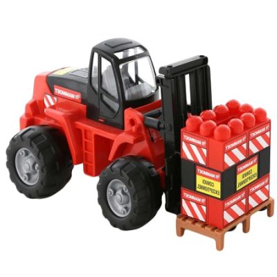 Bun venit in fascinanta lume a utilajelor. O jucarie care cu siguranta il va fascina pe cel mic. Aceasta il va ajuta sa-si dezvolte abilitatile motorii imaginatia si creativitatea. Caracteristici - Stivuitorul este conceput pentru a transporta marfuri pe paleti. Pentru acesta setul include si un palet cu blocuri pentru constructii realizate in culorile seriei Mammoet. - Utilajul este echipat cu doua brate care formeaza o furca ce de deplaseaza pe verticala si cu ajutorul careia se poate ridica cobora paletul de cuburi. - Jucaria este confectionata din material plastic de calitate non toxic. - Jucaria ii dezvolta copilului abilitatile motorii fine imaginatia si creativitatea. Produsul avand un design similar cu un vehicul adevarat va permite copilului sa imite realitatea. - Vehiculul face parte din seria de jucarii lansate de Polesie impreuna cu compania Mammoet specializata in ridicarea si transportul de incarcaturi grele pe apa si pe uscat. Designul jucariei a fost dezvoltat in conformitate cu culorile corporative ale companiei Mammoet ceea ce face ca intreaga serie sa fie realista. - Ambalaj plasa. Avertizare Produsul este nou si comercializat in ambalajul original al producatorului. Imaginile de pe site au caracter informativ. Ambalajul trebuie indepartat recuperat si aruncat de catre un adult inainte de a se da spre utilizare copilului. Nu lasati ambalajele produselor la indemana copiilor. Se recomanda utilizarea produsului sub supravegherea unui adult. Produsul poate contine piese mici care se pot inghiti sau inhala de cei mici existand pericolul de sufocare sau nu este potrivita copiilor mai mici de 3 ani. Pastrati instructiunile si etichetele pentru referinte viitoare. Pastrati produsul departe de foc si nu il lasati in preajma temperaturilor ridicate si a umiditatii. Datorita masurarii manuale a produsului poate exista o diferenta minora fata de dimensiunea reala a produsului.Specificatii