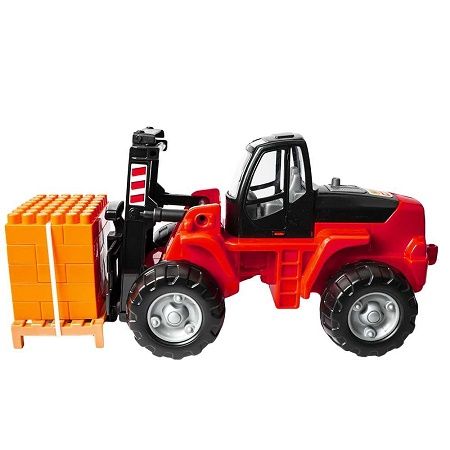Bun venit in fascinanta lume a utilajelor. O jucarie care cu siguranta il va fascina pe cel mic. Aceasta il va ajuta sa-si dezvolte abilitatile motorii imaginatia si creativitatea. Caracteristici - Stivuitorul este conceput pentru a transporta marfuri pe paleti. Pentru acesta setul include si un palet cu blocuri pentru constructii realizate in culorile seriei Mammoet. - Utilajul este echipat cu doua brate care formeaza o furca ce de deplaseaza pe verticala si cu ajutorul careia se poate ridica cobori paletul de cuburi. - Paletul de cuburi poate fi folosit atat in asociere cu stivuitorul dar si pentru erse constructii - Jucaria este confectionata din material plastic de calitate non toxic. - Jucaria ii dezvolta copilului abilitatile motorii fine imaginatia si creativitatea. Produsul avand un design similar cu un vehicul adevarat va permite copilului sa imite realitatea. - Ambalaj plasa. Avertizare Produsul este nou si comercializat in ambalajul original al producatorului. Imaginile de pe site au caracter informativ. Ambalajul trebuie indepartat recuperat si aruncat de catre un adult inainte de a se da spre utilizare copilului. Nu lasati ambalajele produselor la indemana copiilor. Se recomanda utilizarea produsului sub supravegherea unui adult. Produsul poate contine piese mici care se pot inghiti sau inhala de cei mici existand pericolul de sufocare sau nu este potrivita copiilor mai mici de 3 ani. Pastrati instructiunile si etichetele pentru referinte viitoare. Pastrati produsul departe de foc si nu il lasati in preajma temperaturilor ridicate si a umiditatii. Datorita masurarii manuale a produsului poate exista o diferenta minora fata de dimensiunea reala a produsului.Specificatii
