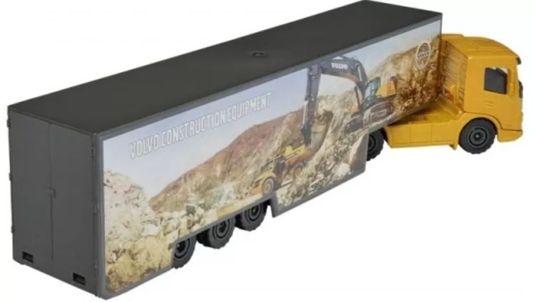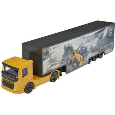 Transportor Volvo din metal lungime 7. 5 cm 3 modele. Replica originalului realizata cu dragoste fidela la detalii combina toate elementele care promit distractie pura pentru copiii cu varsta de 3 ani si peste. Cu o dimensiune de 20 cm sunt compacte si totusi perfecte pentru utilizare pe santiere. Culorile grozave si numeroasele detalii fac imaginea completa si transforma fiecare camion in centrul lumilor de joaca pentru copii in cel mai scurt timp si ofera de asemenea celor mici o perspectiva asupra muncii captivante pe un santier. FMX Transporter cu remorca si incarcator frontal FMX Transporter cu 2 containere de constructie sau FMX Truck cu remorca - toate sunt esentiale pentru ca totul pe santierul modern sa ajunga la timp la locul sau de utilizare. Acest pachet contine un tir.Specificatii