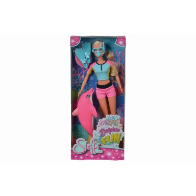 Ofer?-i copilului t?u un partener de joac? ce i va fii mereu al?turi. Steffi este preg?tit? pentru orice aventur?. Acum ea este n vacan?? ?i noat? cu delfinii. Aceast? p?pu?? este mbr?cat? ntr-un costum de scufund?ri din dou? piese, are labe de not ?i o masc? cu tub pentru respirat, ?i vine acompaniat? de un mic delfin roz.