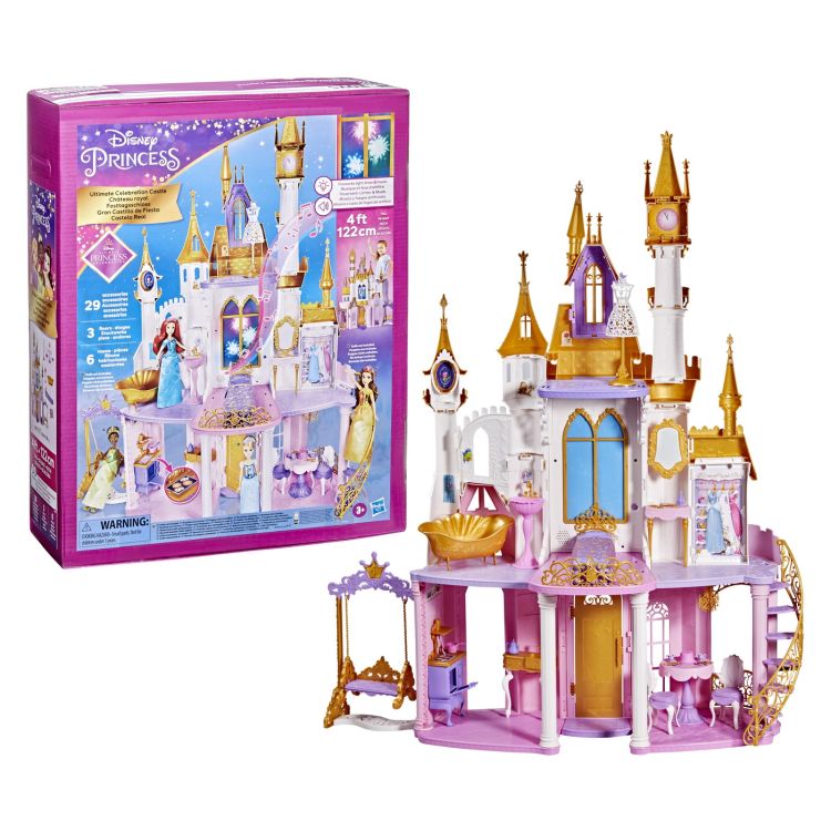 Avand o inaltime de 121 de cm, cu aspectul sau clasic, aceasta casa de papusi are 3 etaje si 6 camere, inclusiv o baie cu cada si chiuveta, dormitor cu pat si chiuveta, o bucatarie cu aragaz, o sufragerie cu masa si scaune. Fereastra de la etaj se lumineaza ca intr-un foc de artificii in timp ce canta muzica, astfel incat copiii sa-si imagineze personajele printesei Disney urmarind un spectacol de artificii spectaculos. Setul include, de asemenea, 29 de accesorii, cum ar fi furculite, linguri, un ceainic, cesti de ceai, farfurii, un pieptene, oglinda si multe altele pentru a ajuta imaginatia copiilor sa prinda viata. Exista o canapea care se transforma intr-un leagan de gradina pentru exteriorul castelului. Cu dimensiunile, mobilierul, accesoriile, luminile si muzica, aceasta casa de papusi este un cadou grozav pentru fetele de la 3 ani in sus. Este o casa grozava pentru papusile Printesa Disney si nu sunt necesare unelte pentru a fi asamblat de catre adulti.